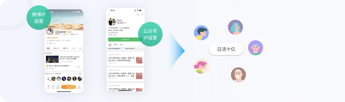 公众号IP 微博IP 社群IP微信和微博海量用户覆盖,通过代运营服务能快速提升品牌日均曝光量